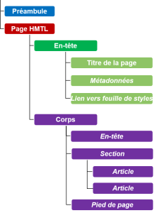 Un fichier HTML doit respecter la structure logique globale d'une page Web. Le tableau ci-dessous en explicite les différents éléments. Certains de ces éléments seront décrits dans des sous-sections subséquentes.