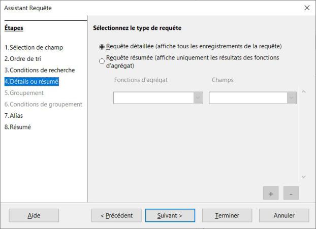 Ensuite, il est possible de décider d'aller vers une requête qui détaillera tous les enregistrements retrouvés ou une requête qui fera des regroupements pour faire certains calculs. Pour notre exemple, nous voulons tout le détail.