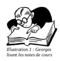 Dans l'exemple ci-dessous, la légende "Illustration 1 : Georges lisant les notes de cours" a été ajoutée à l'image pour préciser qu'il s'agit d'une illustration. Comme il s'agit de la première illustration dans le document, le numéro 1 lui a été associé.