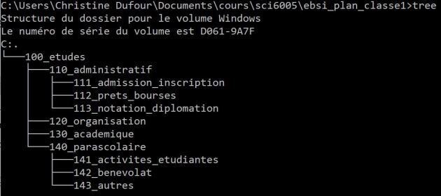 Il est possible aussi de naviguer dans l'arborescence en utilisant le mode commande du système d'exploitation qui est un mode de représentation uniquement textuel.
